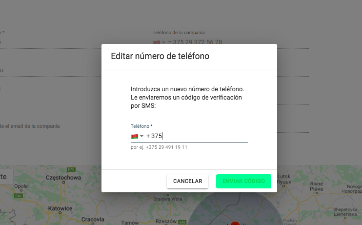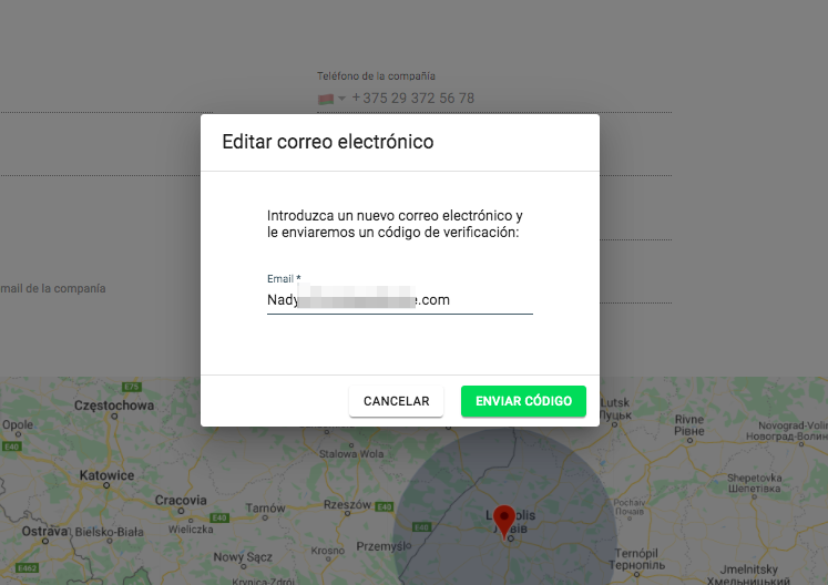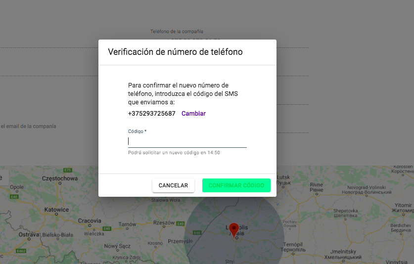 El cambio del número de teléfono o correo electrónico del manager de la empresa requiere verificación.