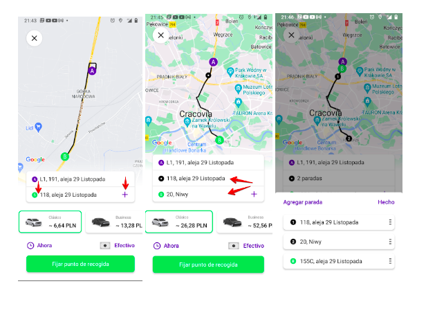 Puedes añadir un máximo de 8 direcciones dentro de la función de Entrega múltiple. Por favor, ten en cuenta que cada parada añadida se convierte en el "nuevo" destino final, haciendo que el destino previamente añadido se convierta en una parada intermedia.