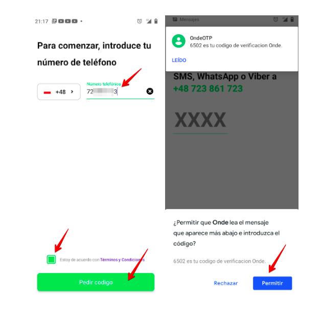 Primero, crea o accede a tu perfil en la aplicación de Clientes con el código de autorización recibido en tu número de teléfono al realizar la solicitud.