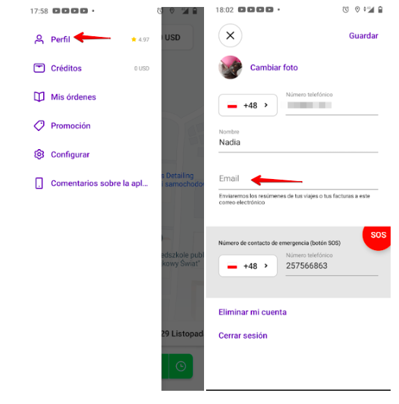 En caso de que hayas añadido un correo electrónico a tu perfil, también recibirás un resumen del viaje allí después de cada orden que hagas.