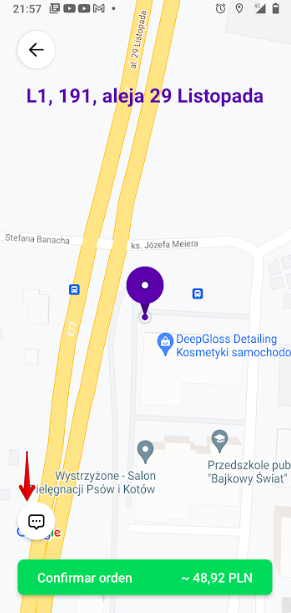 Antes de enviar la orden, asegúrate de verificar si la "Ubicación de recogida" es correcta. Puedes tocar en el icono de "Flecha hacia atrás" para cambiarla.