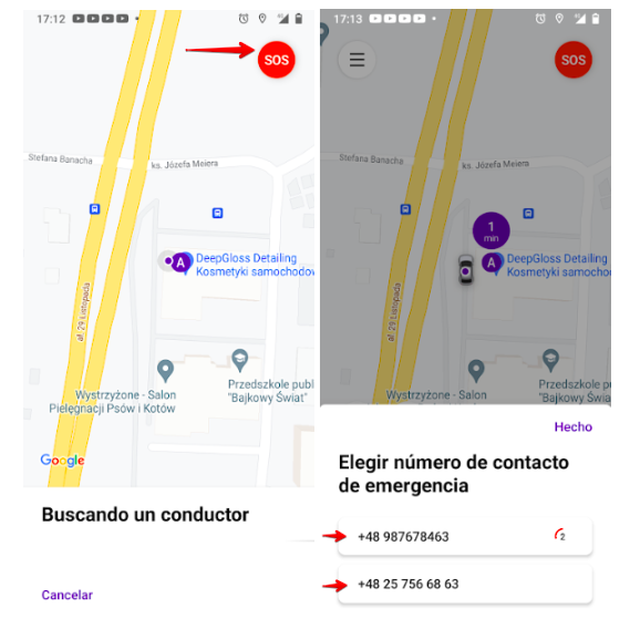 El botón SOS se muestra desde que la orden se envía a los conductores hasta que se completa el viaje y se paga.