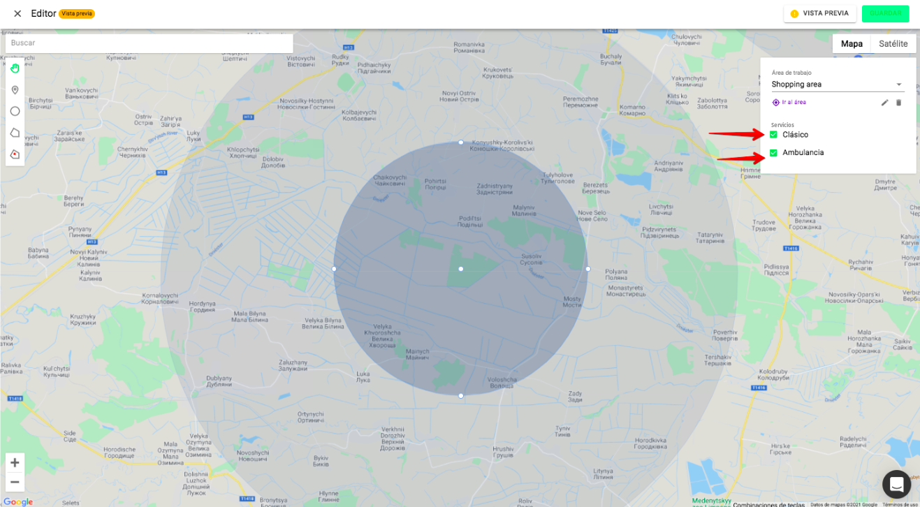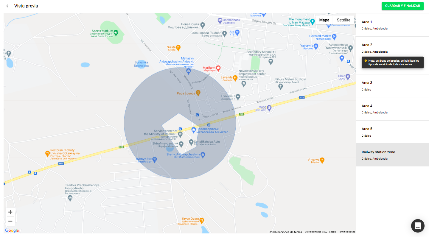 5. Habilitar o deshabilitar la prestación de servicios en un área según las necesidades de temporada, las normativas de la ciudad, etc. (Por ejemplo, restricción de servicios en el centro de la ciudad los fines de semana).