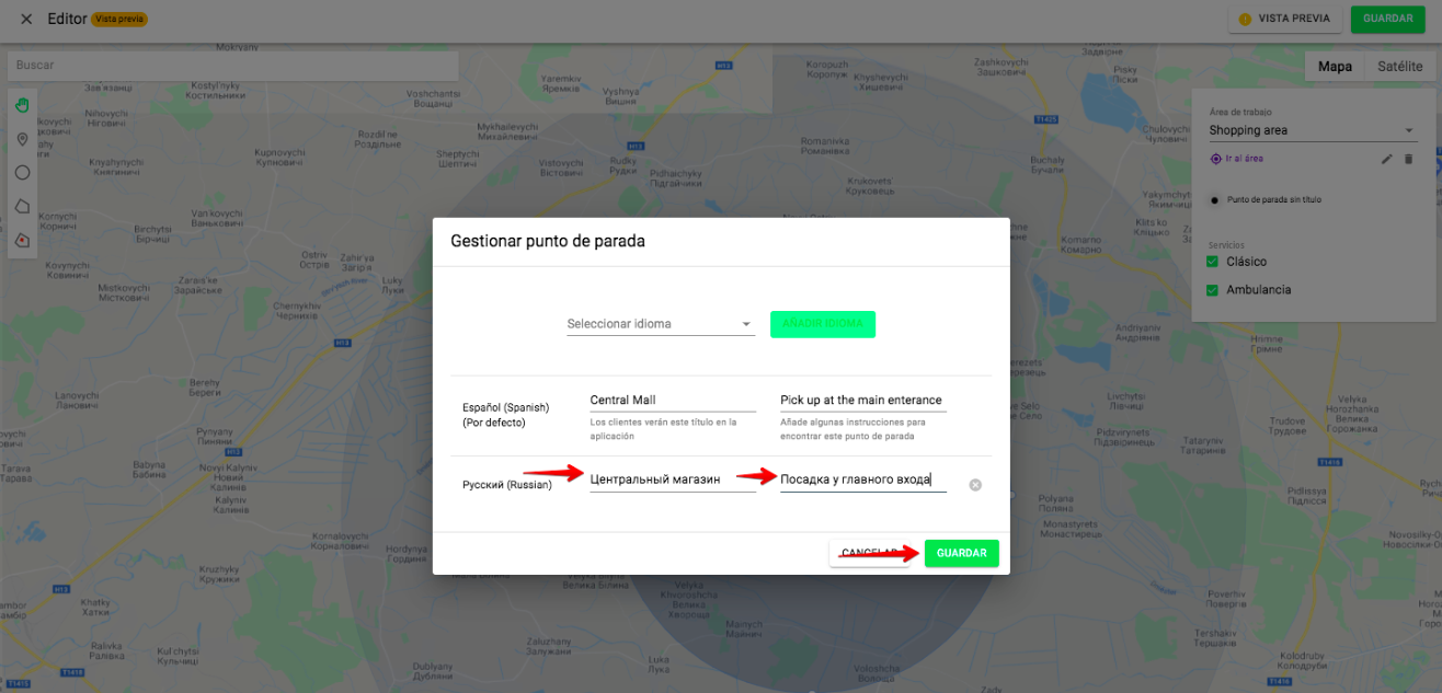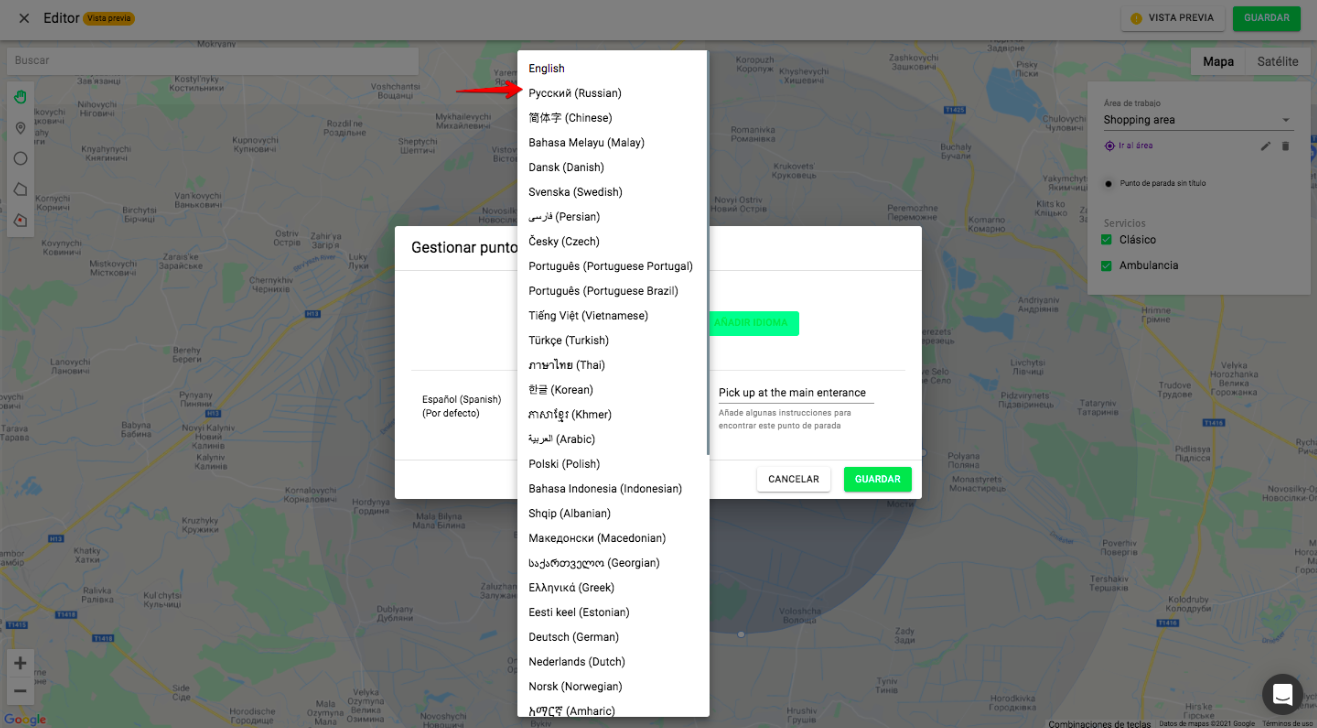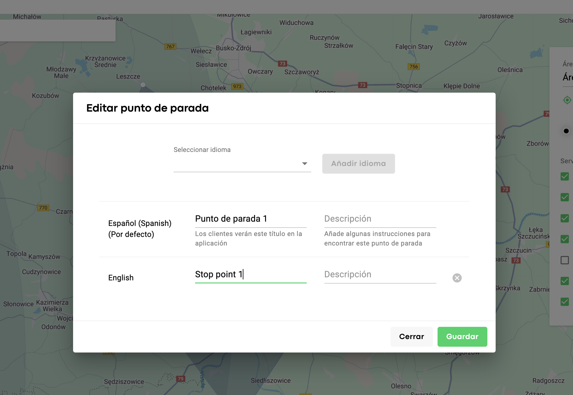 3. Añade los idiomas a los que quieras que se traduzcan los puntos (también pueden añadirse al crear el punto)