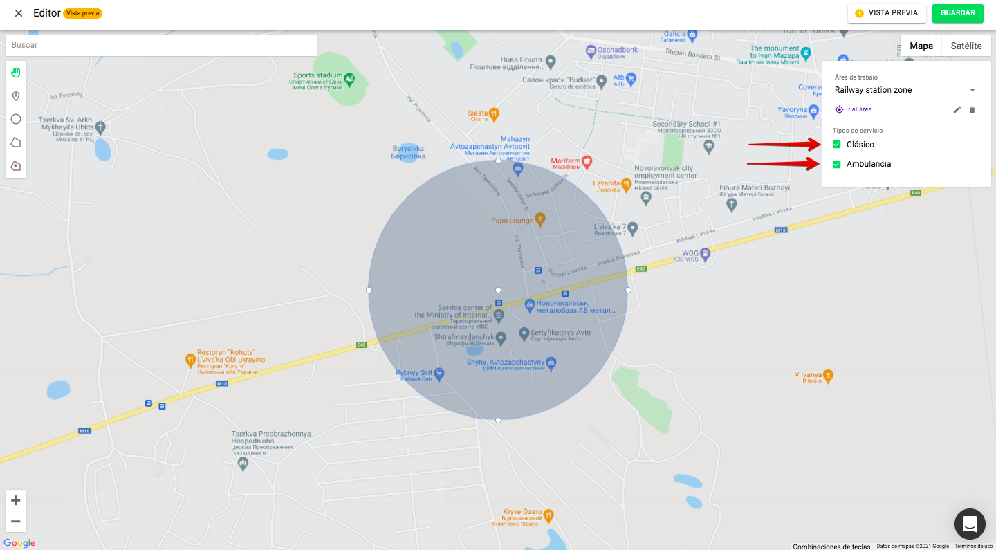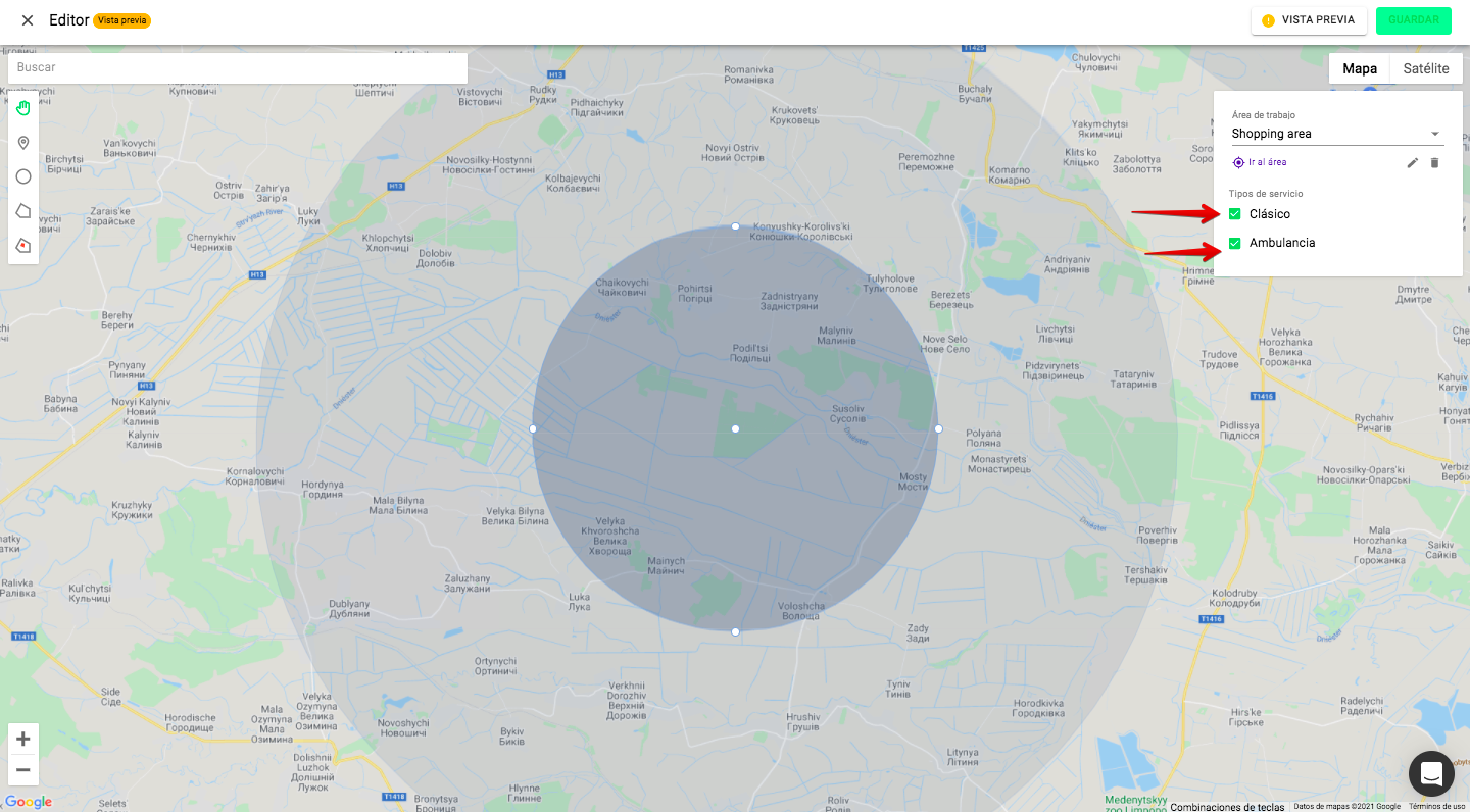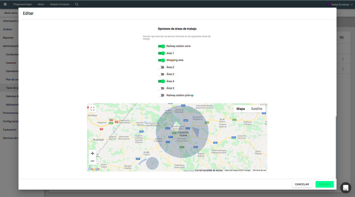 5. Habilitar o deshabilitar la prestación de servicios en un área según las necesidades de temporada, las normativas de la ciudad, etc. (Por ejemplo, restricción de servicios en el centro de la ciudad los fines de semana).