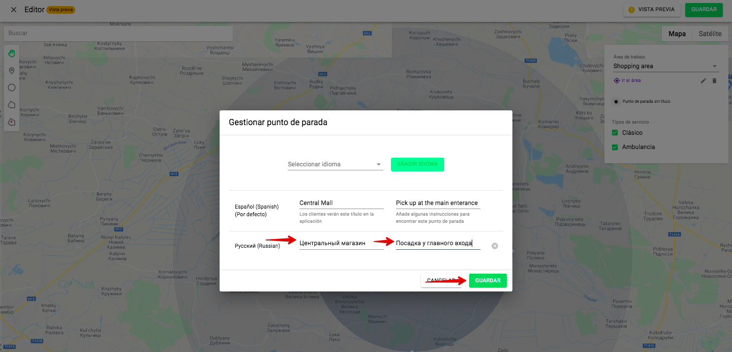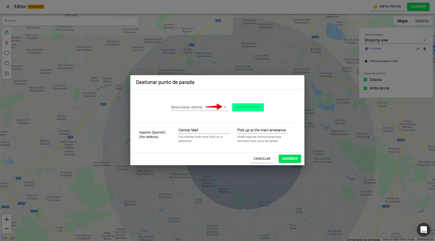 3. Añade los idiomas a los que quieras que se traduzcan los puntos (también pueden añadirse al crear el punto)