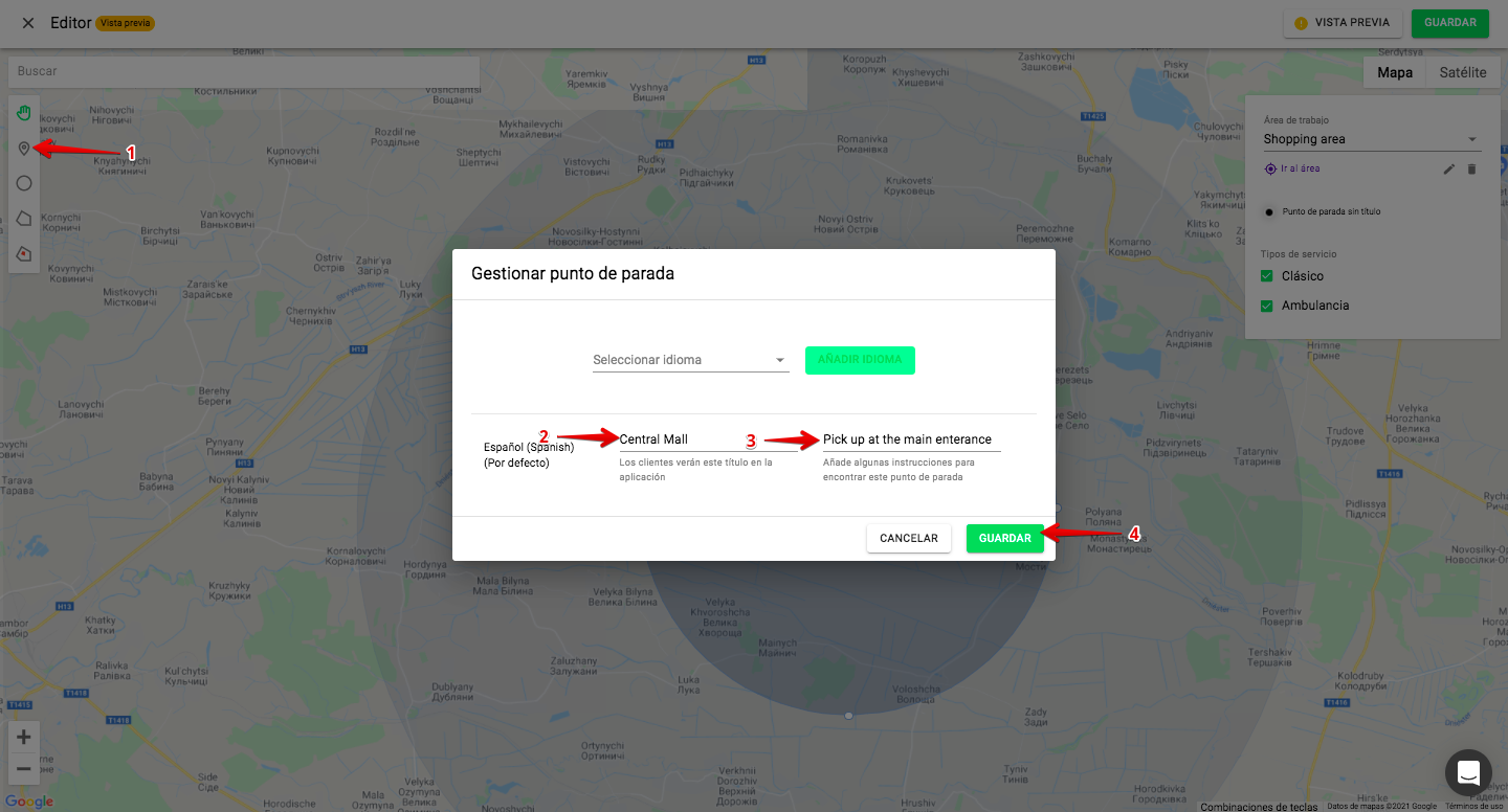 e. Escribe el nombre del punto, añade instrucciones para los clientes y pulsa en «GUARDAR»