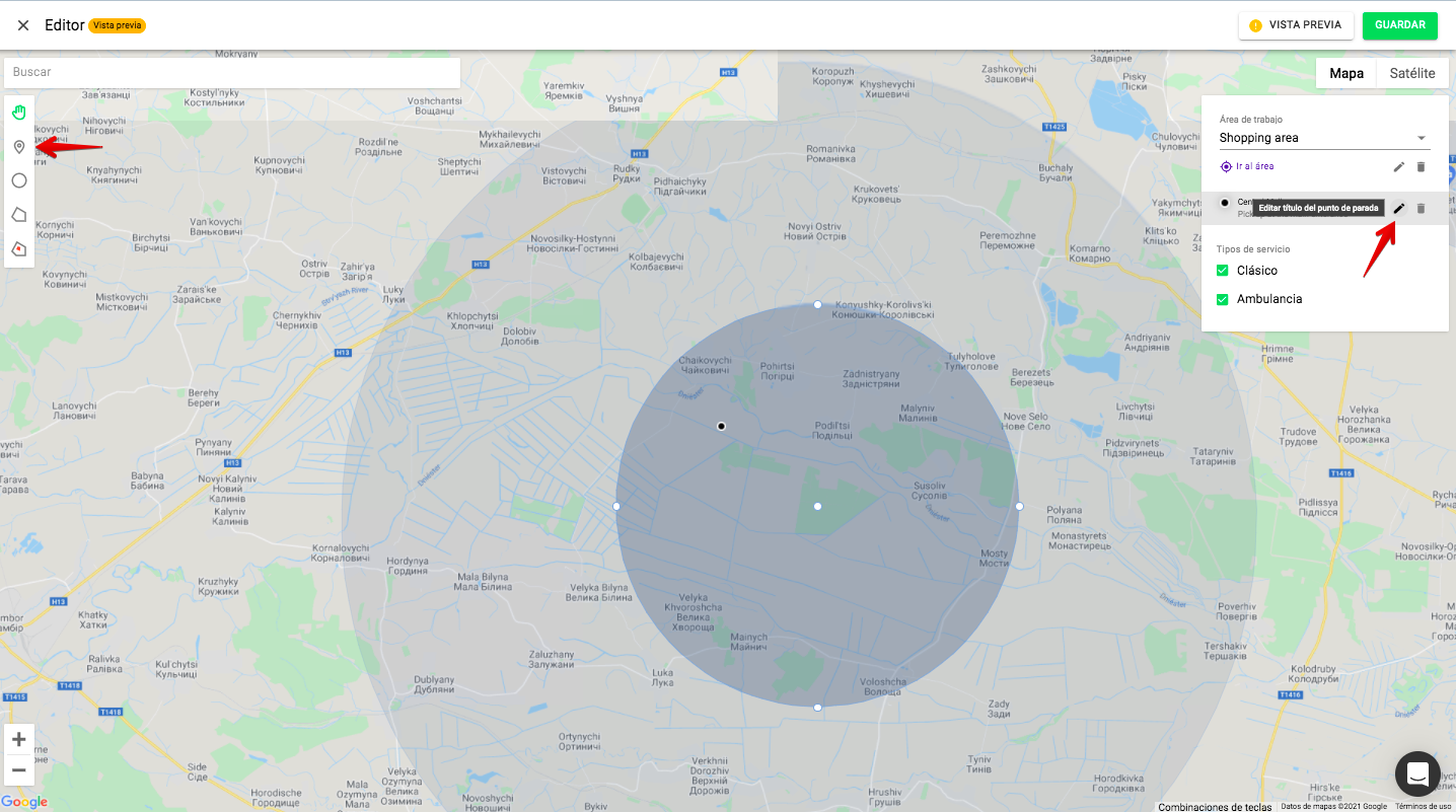 a. Pulsa en la herramienta de creación de puntos de parada y crea la parada que necesites dentro del área