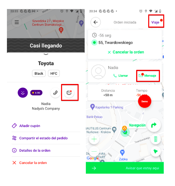 - la comunicación entre el conductor y el cliente es posible incluso si las partes no utilizan las aplicaciones de la misma empresa