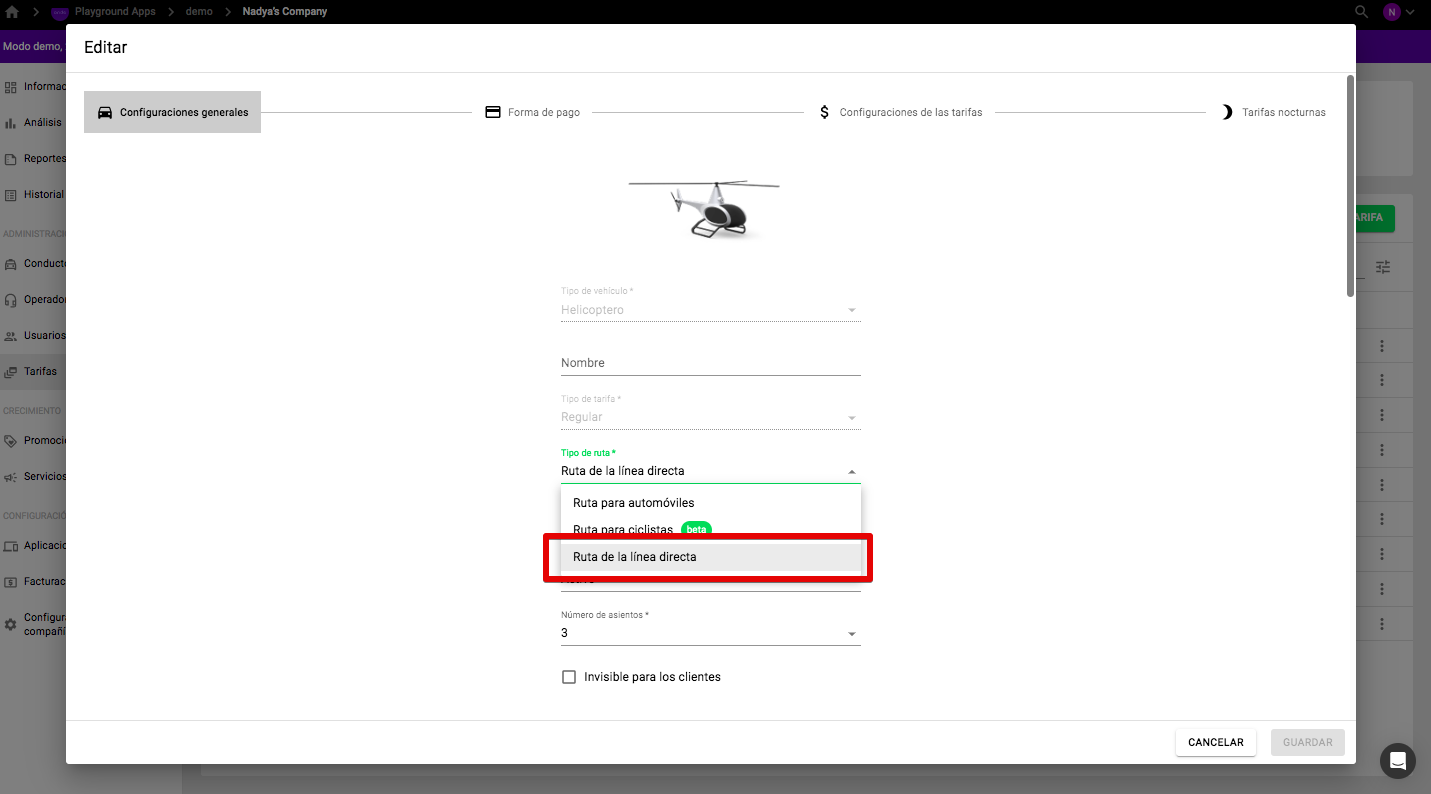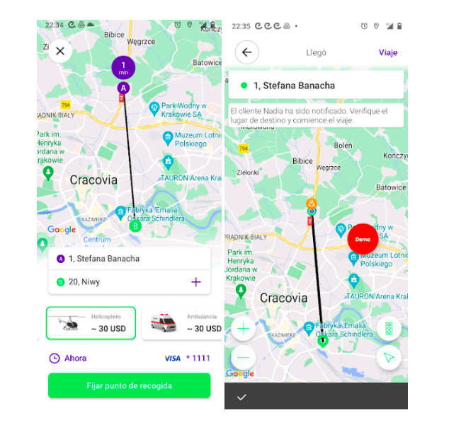 Las rutas de línea directa son soportadas en las aplicaciones para Conductores, Clientes y Operadores.