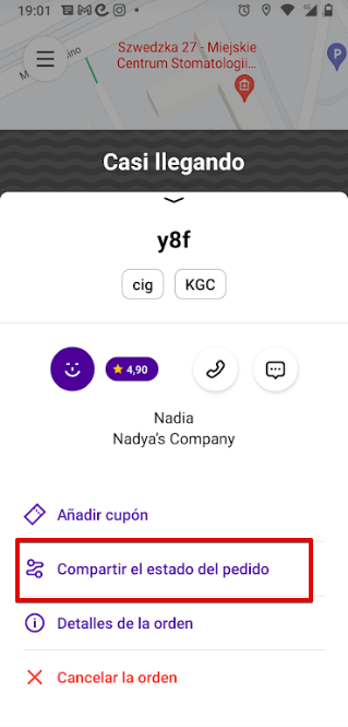 La opción de compartir el enlace del viaje está disponible desde el momento en que el viaje está en estado "Aceptado".
