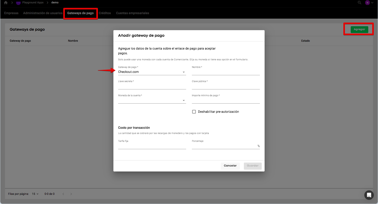 Nuestra plataforma está integrada con Checkout para procesar pagos con tarjeta de crédito en varios países. En caso de que desees trabajar con Checkout como procesador de pagos, por favor, sigue los siguientes pasos: