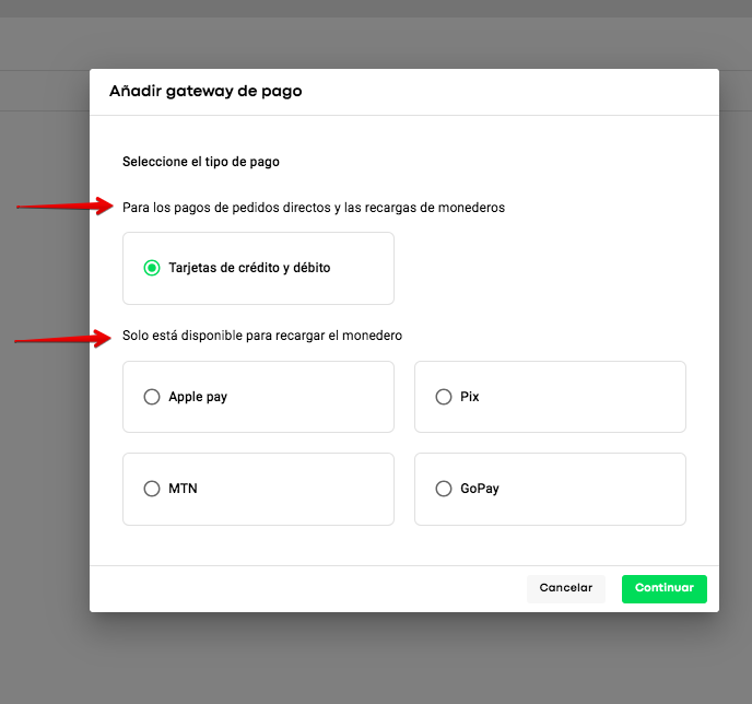 Para esto, la empresa tiene que agregar 2 registros de pago separados en Comerciante uno por uno y activarlos en My Hub.