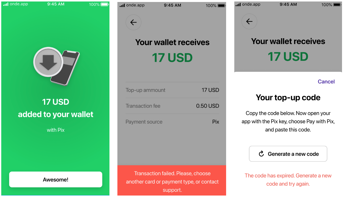 ¡Y listo! Ahora tus clientes y conductores pueden recargar sus Carteras con Pix de la siguiente manera: