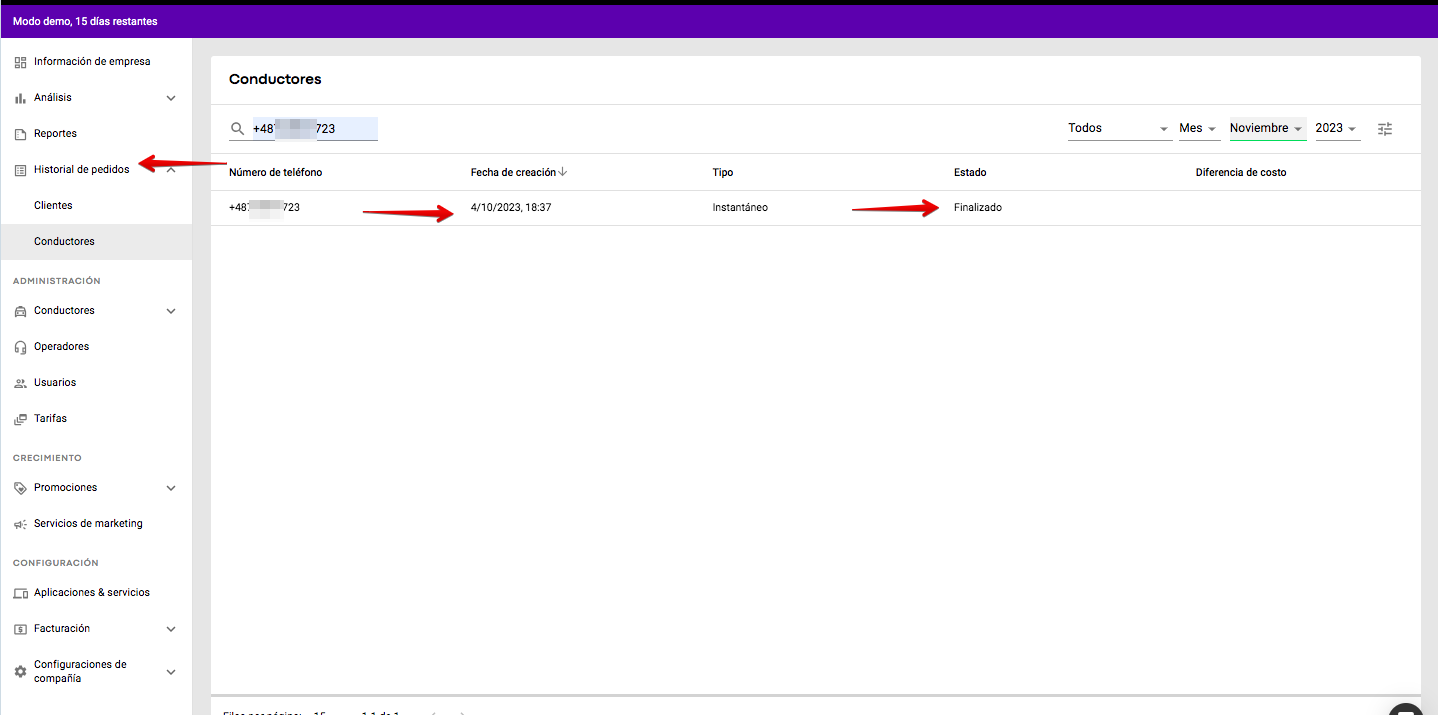Después de eso, puedes descargar un informe CSV de las transacciones filtradas. Esto puede ayudar a analizar el comportamiento y rendimiento del conductor.