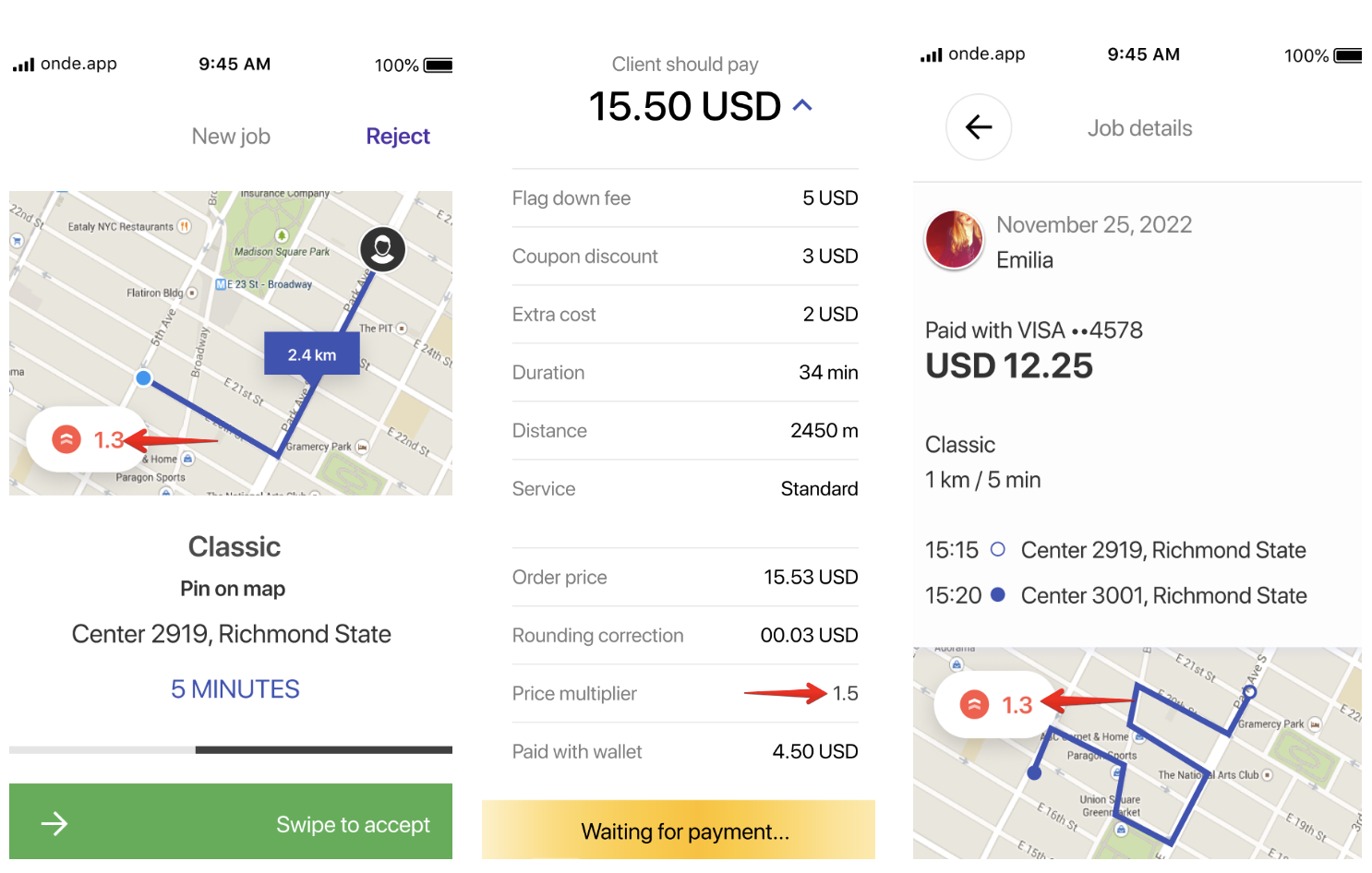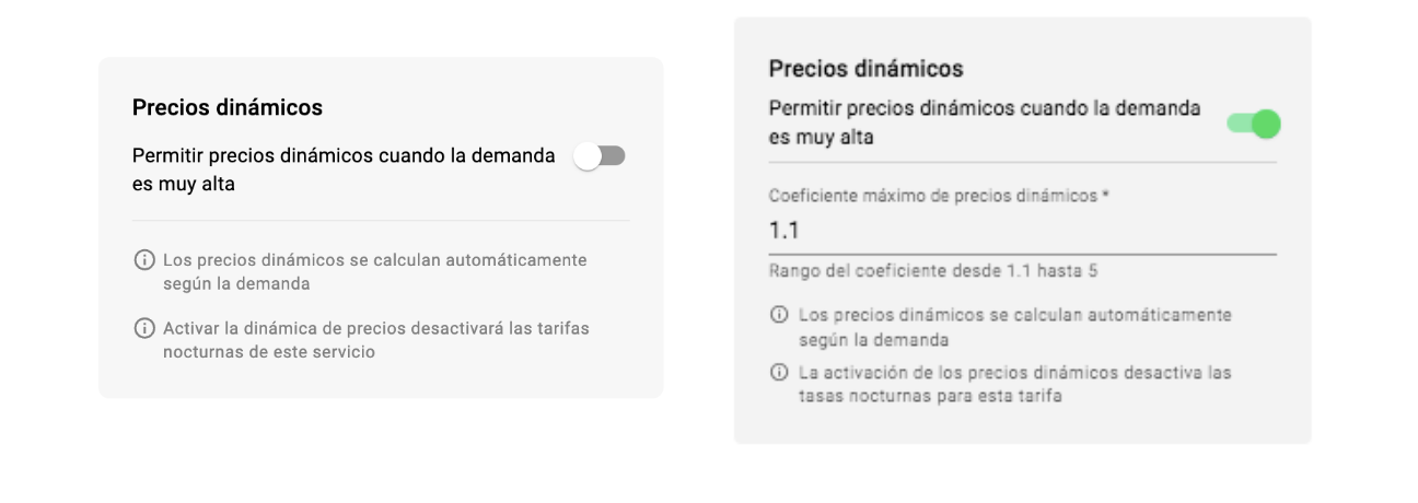 En caso de que se aplique el coeficiente de tarifas dinámicas para el pedido, tanto el cliente como el conductor son notificados