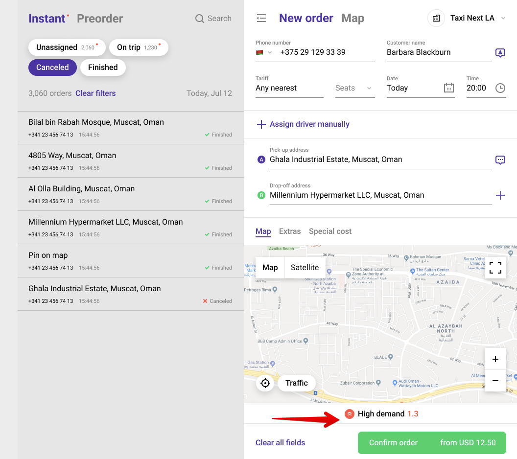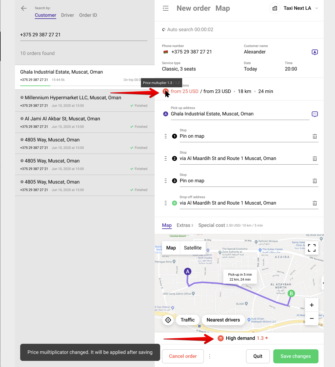 IMPORTANTE: en caso de que un operador edite un pedido enviado, reasigne un conductor, cambie el punto de recogida, actualice la tarifa y el coeficiente en el momento de la edición sea diferente al inicial, también se actualizará.
