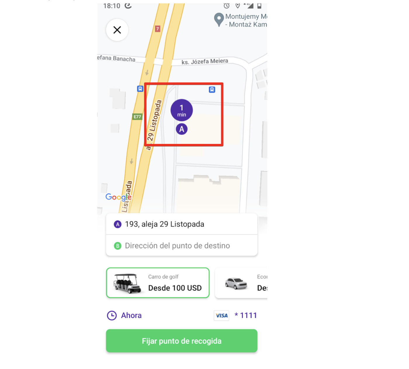 Originalmente, cuando un cliente está definiendo el servicio y la dirección de recogida en la aplicación, el sistema muestra la hora estimada de llegada desde el conductor más cercano del servicio solicitado hasta el lugar de recogida del cliente.