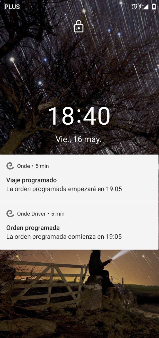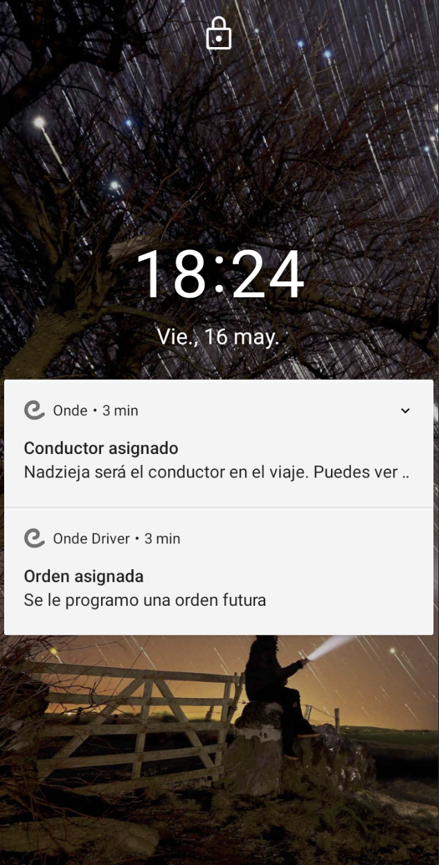 El conductor recibe la siguiente notificación push: