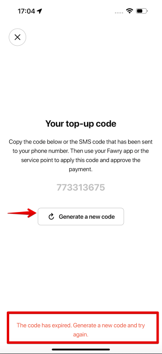En caso de que la transacción no se procese dentro de los 15 minutos, el código expira, la app mostrará un mensaje de alerta y tendrás que generar un nuevo código.