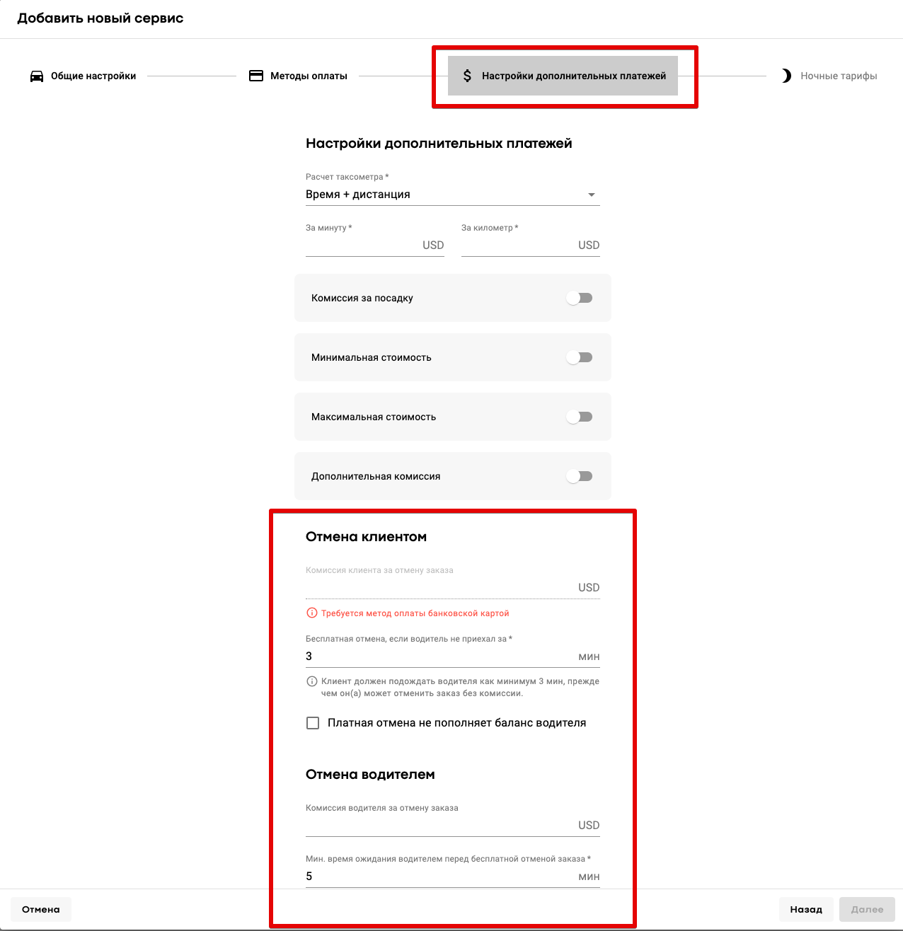 Настроив политику отмены заказа, переходите к статье “Настройка сервисов 6: Ночные тарифы”