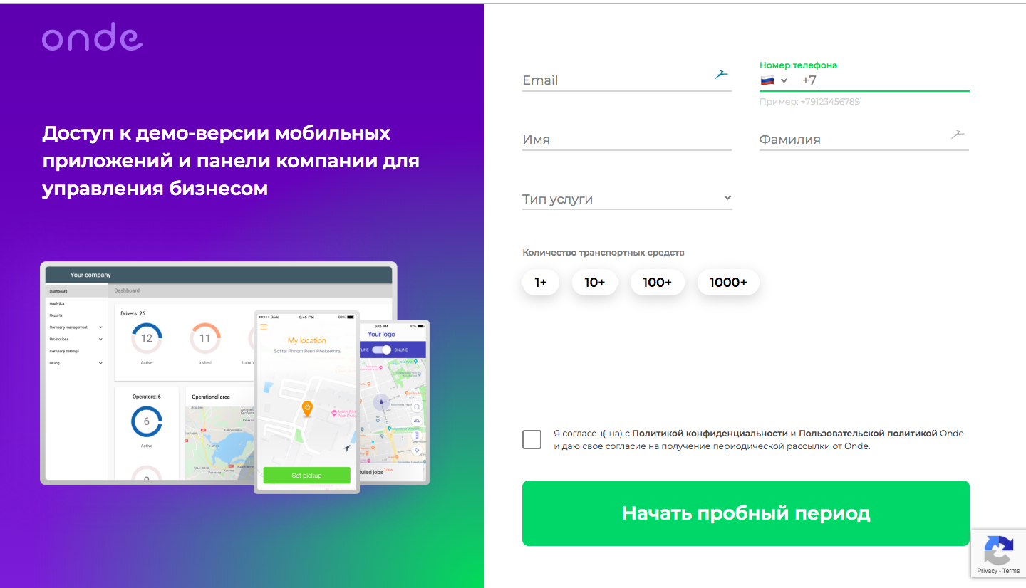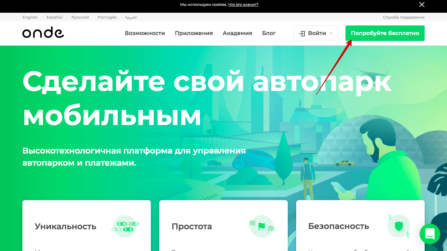 Нажмите «Попробовать бесплатно» на главной странице https://onde.app/
