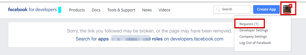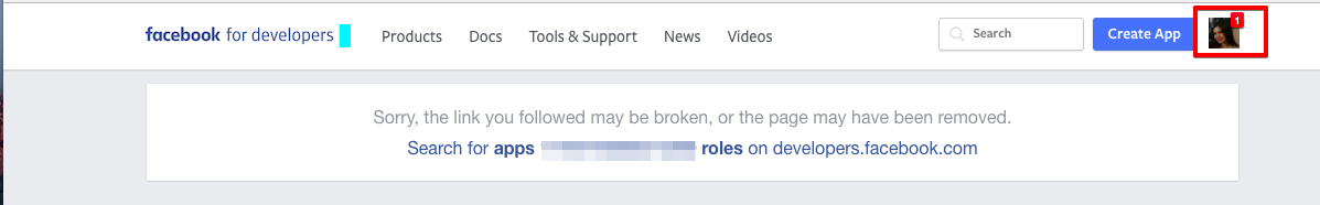 3. После этого перейдите на сайт https://developers.facebook.com, войдите с данными вашего профиля Facebook, и вы увидите новое уведомление в правом верхнем углу экрана.