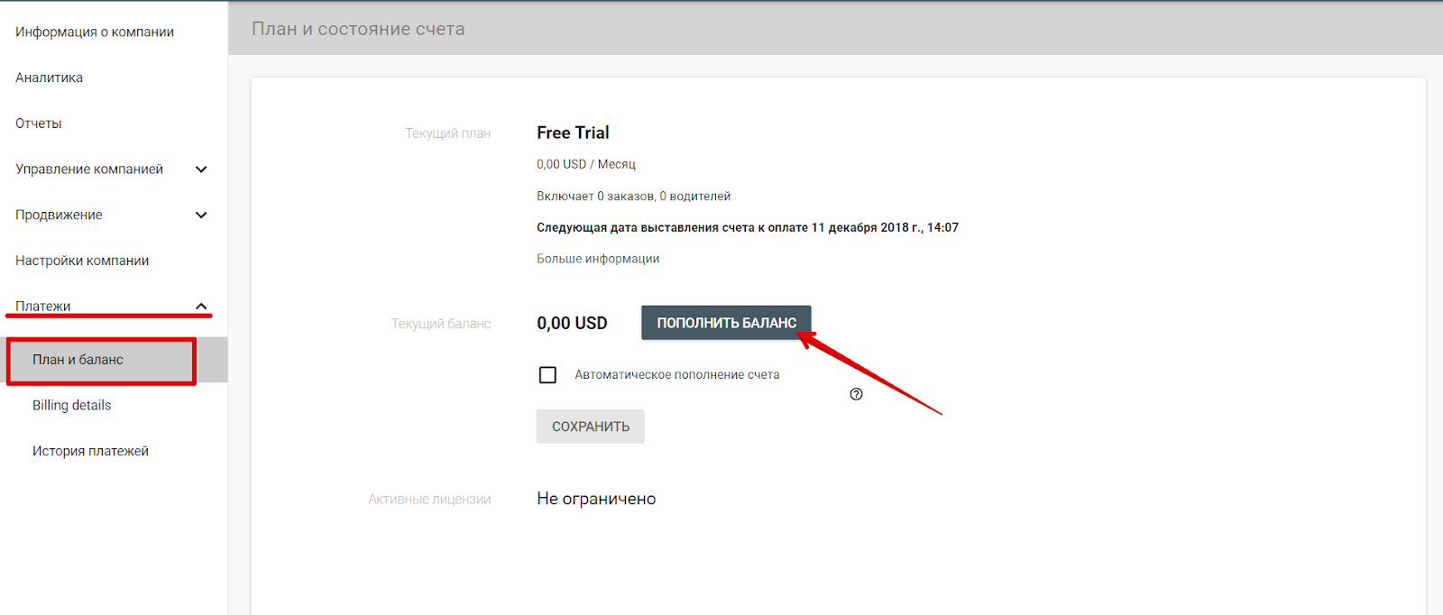 Вы можете пополнить баланс через Мой Хаб. Зайдите в раздел «Платежи» >> «План и баланс» и нажмите кнопку «Пополнить баланс».