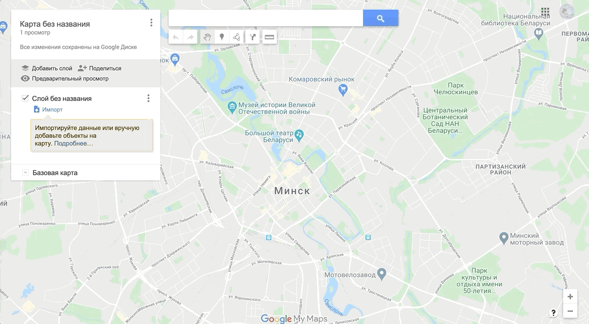 Для начала откройте документ с картой и выберите функцию “Нарисовать линию”. Пожалуйста, не используйте более 30 точек для одной зоны. Когда зона нарисована, можно проверить ее площадь и длину границ, а также окрасить ее в один из предложенных цветов.