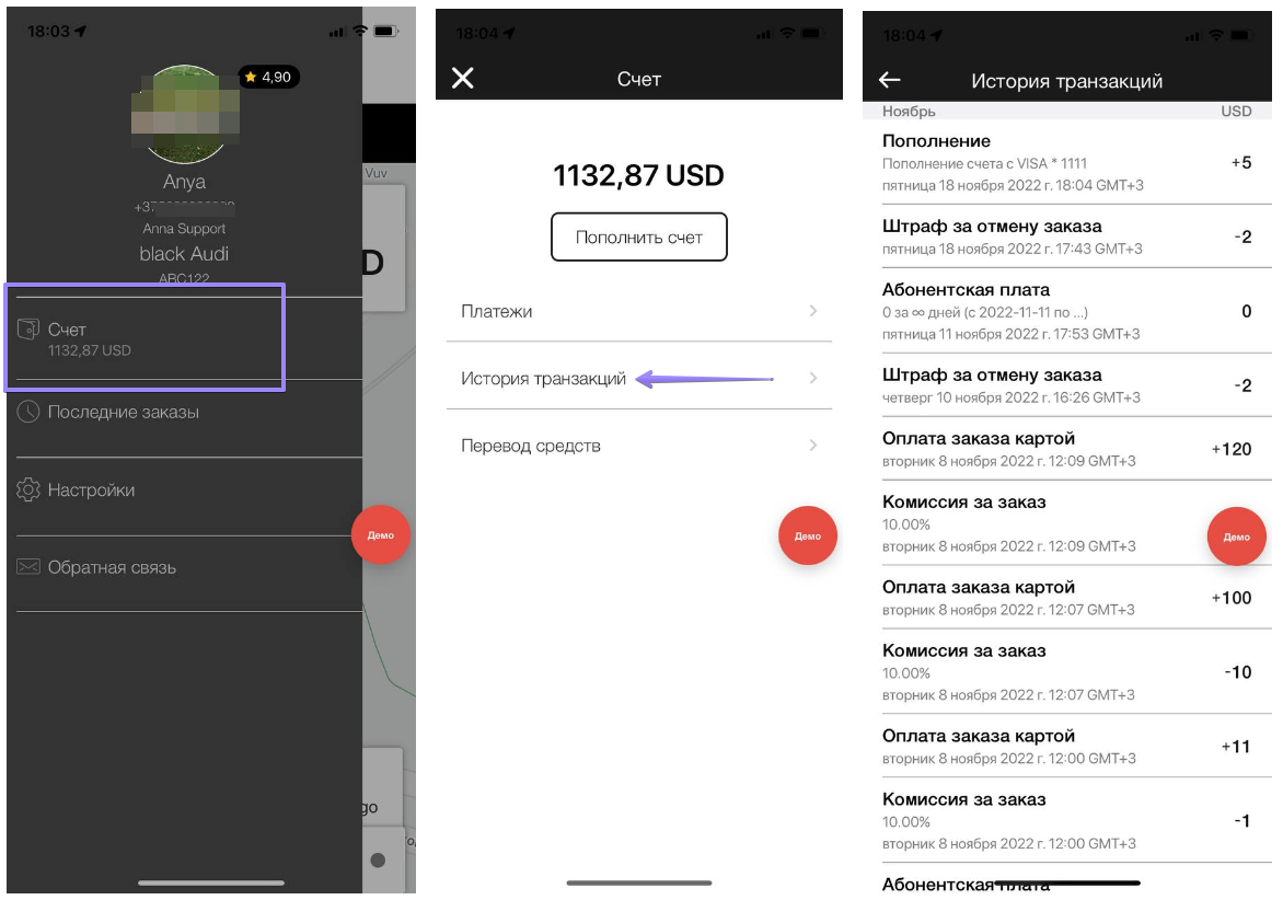 Водитель может проверить свой баланс во вкладке “Счет” своего приложения.