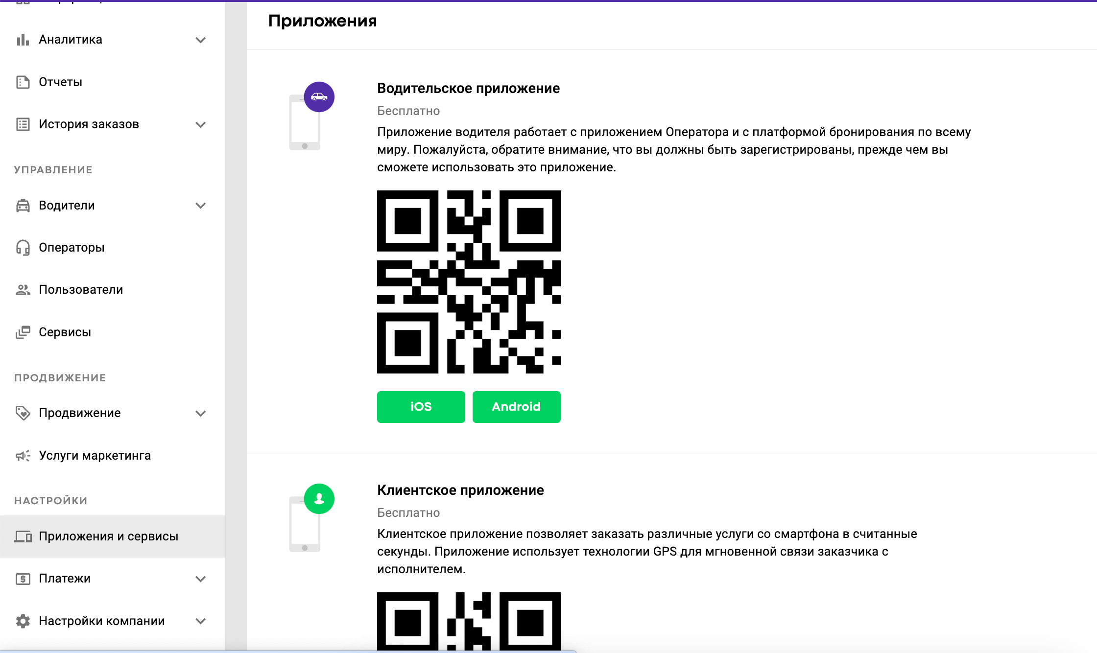 Откройте раздел «Приложения и сервисы», в котором находятся ссылки на водительские приложения Android и IOS.