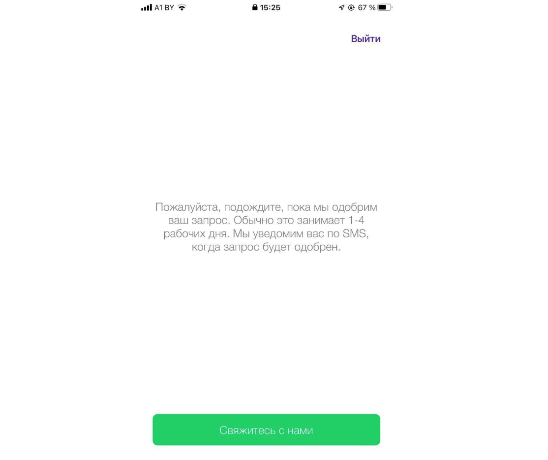 Скачав приложение, водитель должен открыть его и заполнить всю информацию, необходимую для работы в выбранной компании. Отправив заявку на активацию, он увидит такое сообщение: