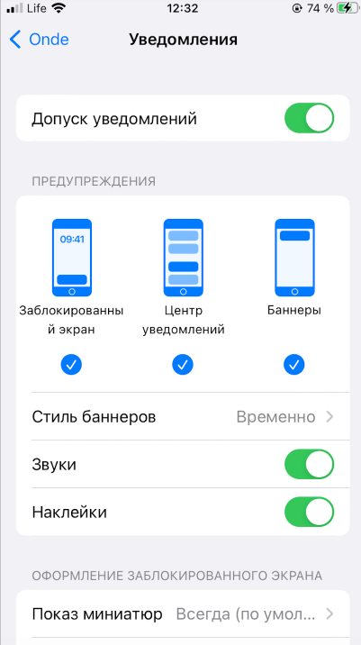 Статус: статус уведомлений: