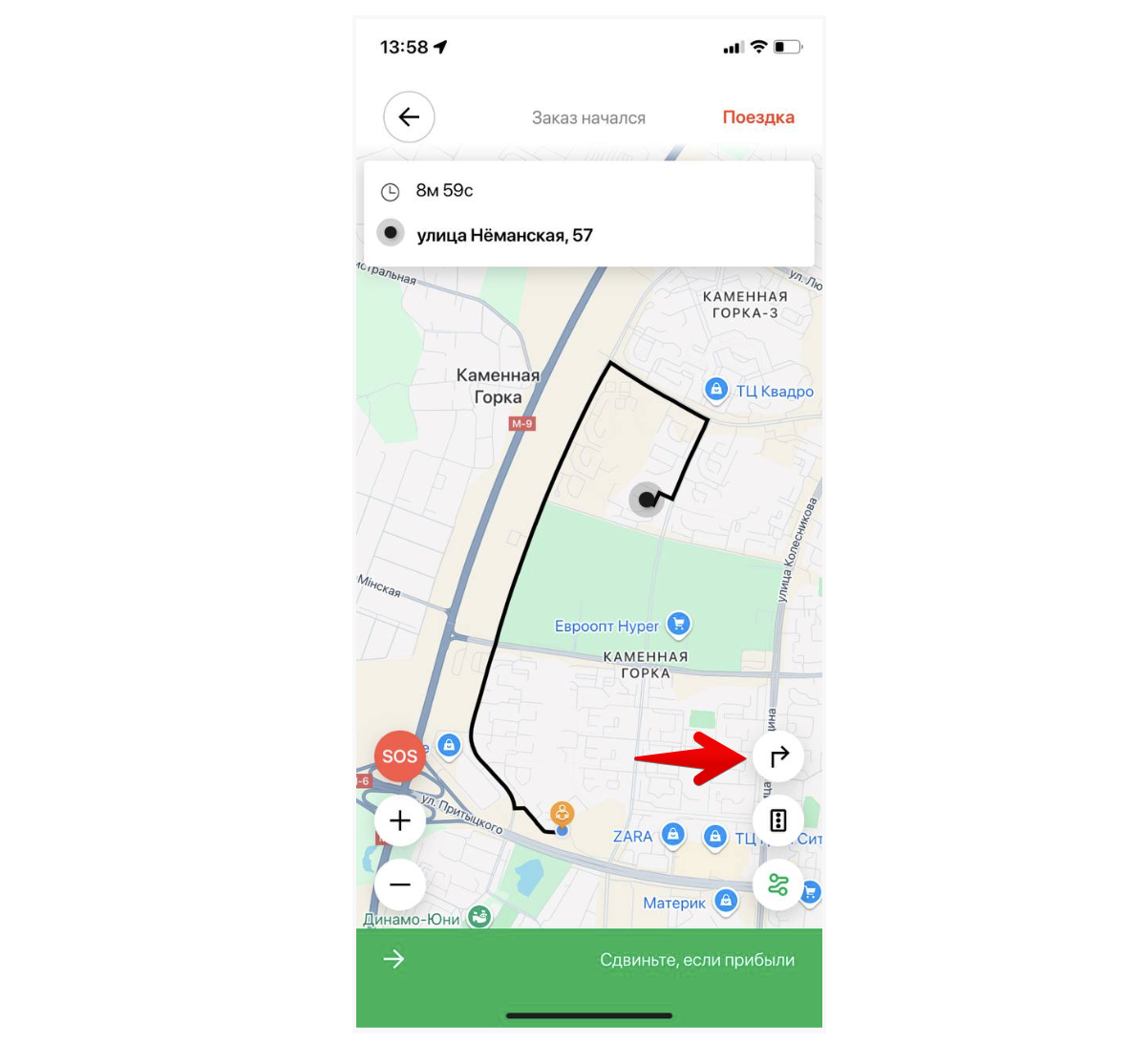 Проведите по экрану, чтобы начать поездку