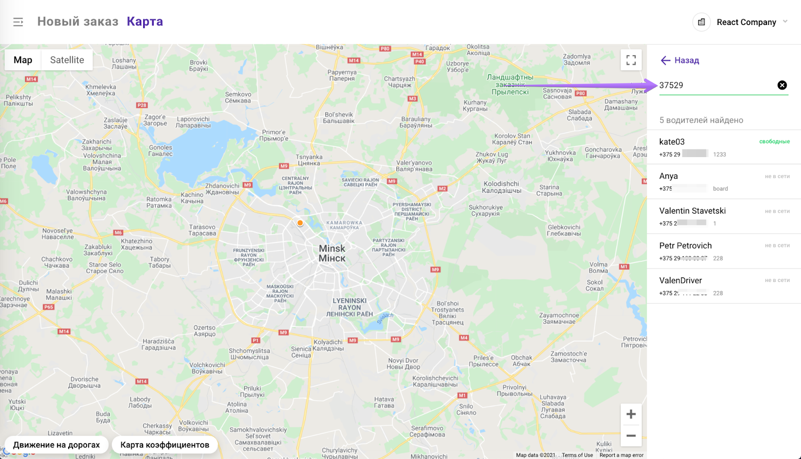 «Карта» в приложении оператора - это уникальный инструмент для отслеживания водителей и текущих поездок.