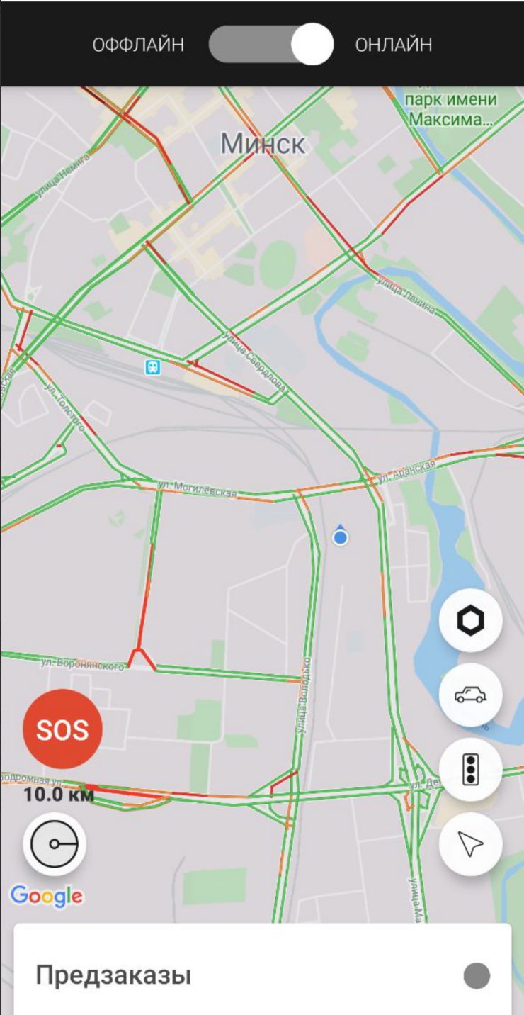 Водитель может отрегулировать радиус своей зоны работы, нажав на соответствующую иконку.