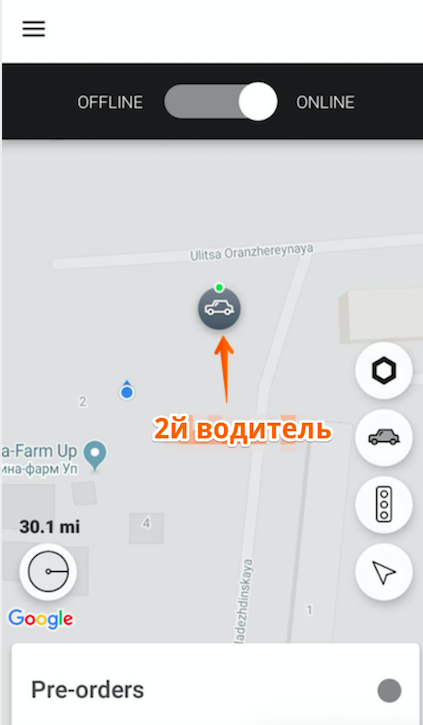 3. “Другие водители на карте” - нажав на эту иконку, водитель сможет видеть на карте других водителей компании.