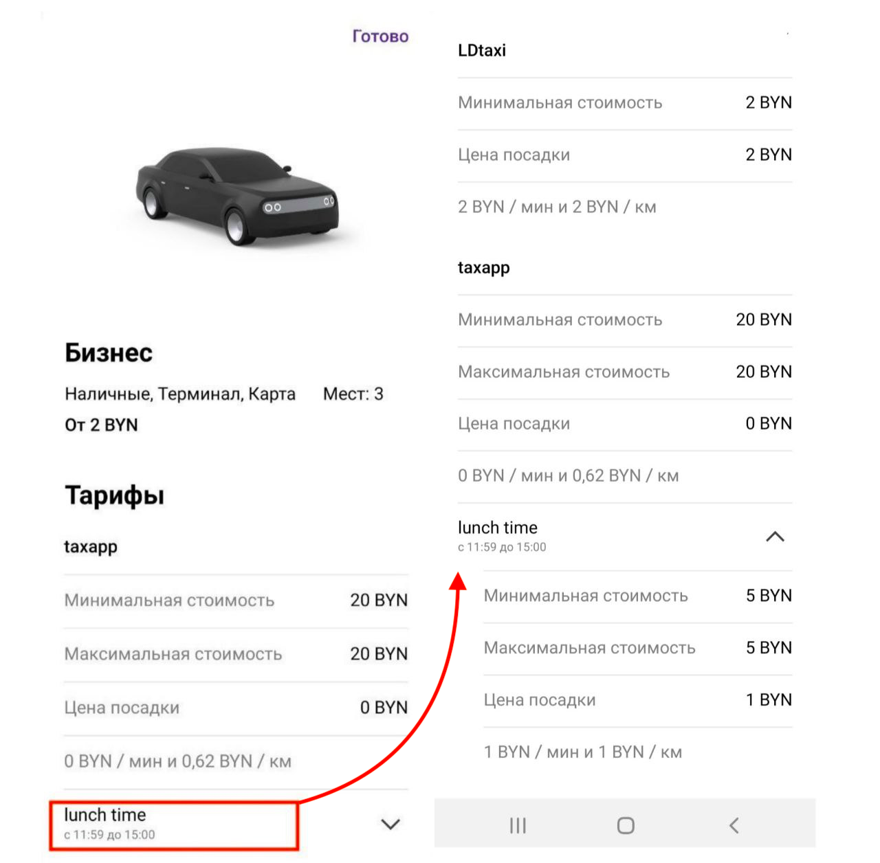 Клиенты могут просмотреть ночные тарифы для любого сервиса в приложении клиента, перейдя во вкладку “Сервисы” во время создания заказа.
