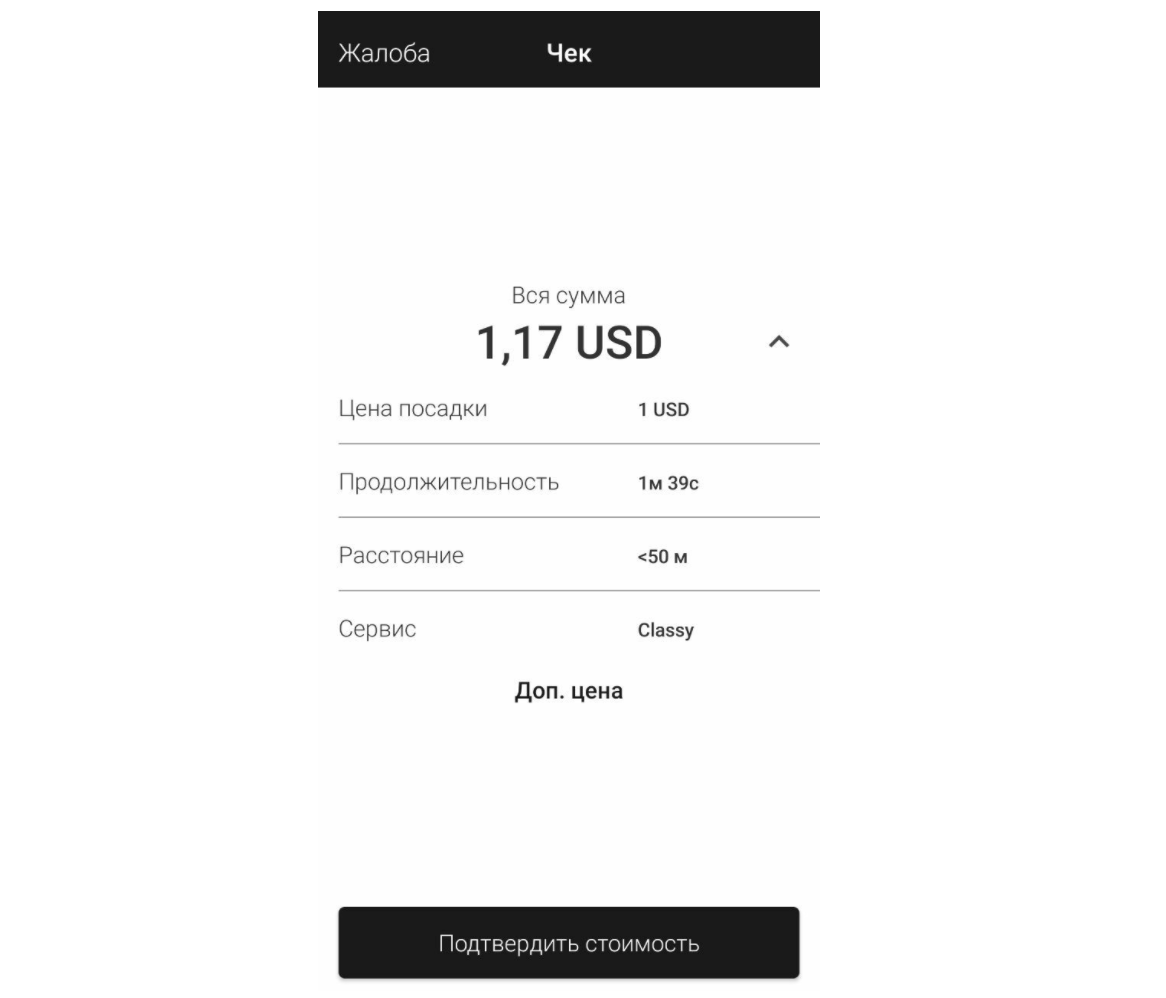 В этом случае водители увидят стоимость поездки после того, как закончат ее, на этапе подтверждения стоимости.