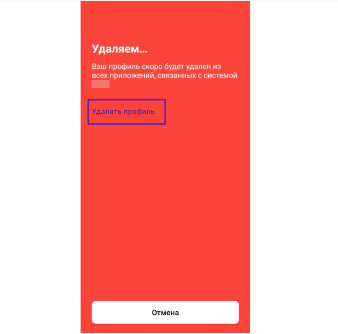 Последний шаг для полного удаления аккаунта — нажать кнопку “Удалить профиль”.
