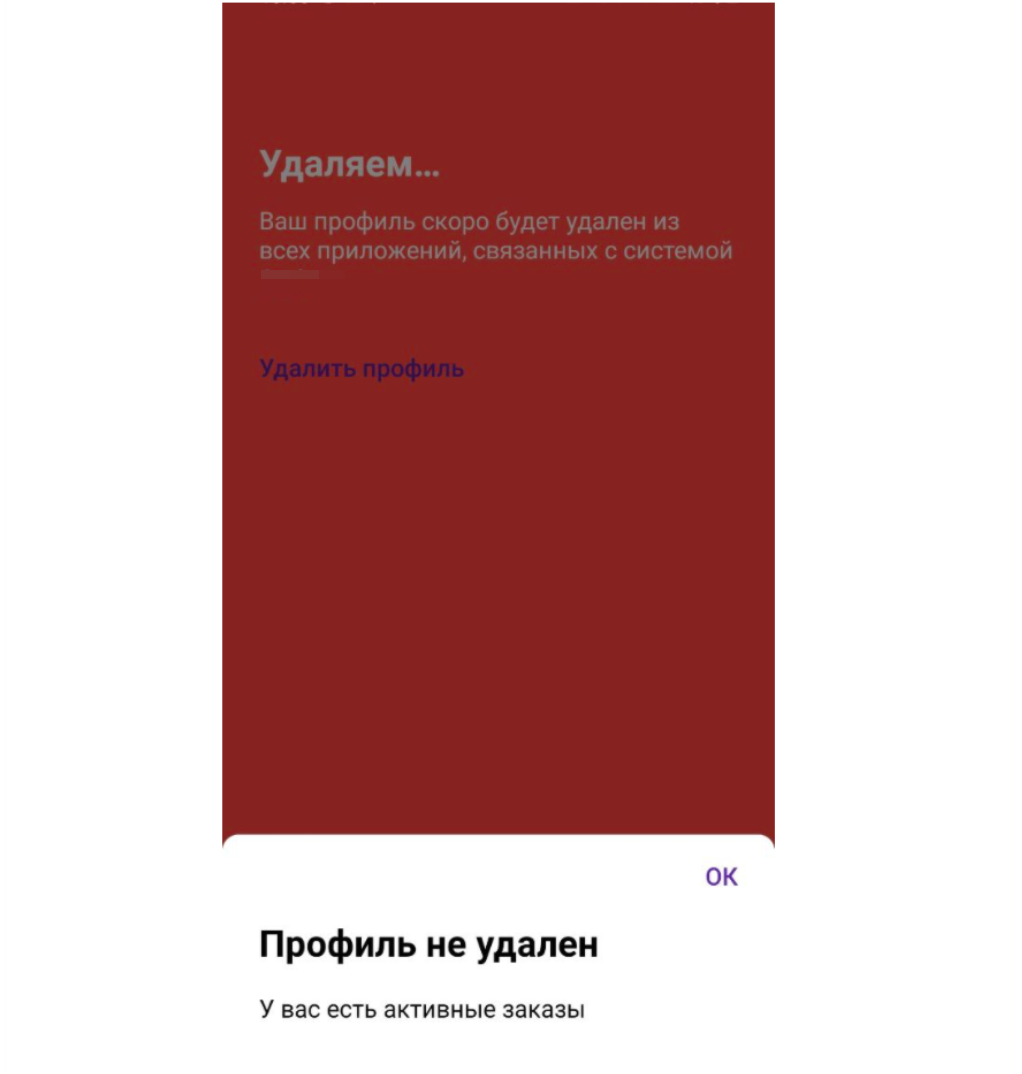 Учтите, что если у клиента есть текущие заказы или созданные предзаказы, профиль не может быть удален. Все активные заказы должны быть завершены заранее.