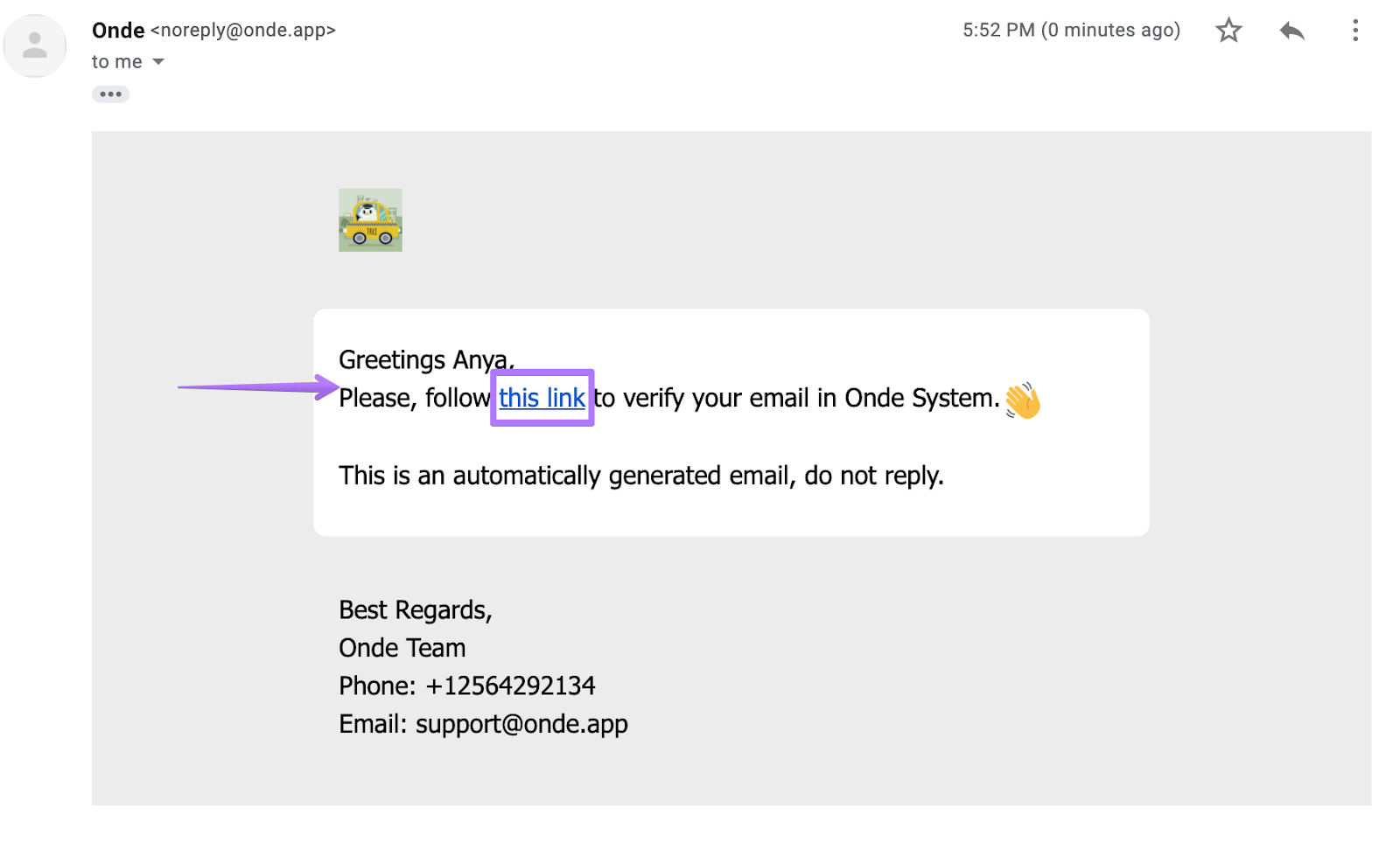 Если электронная почта компании не указана, по умолчанию все письма вашей компании отправляются с адреса noreply+companyid@onde.app.