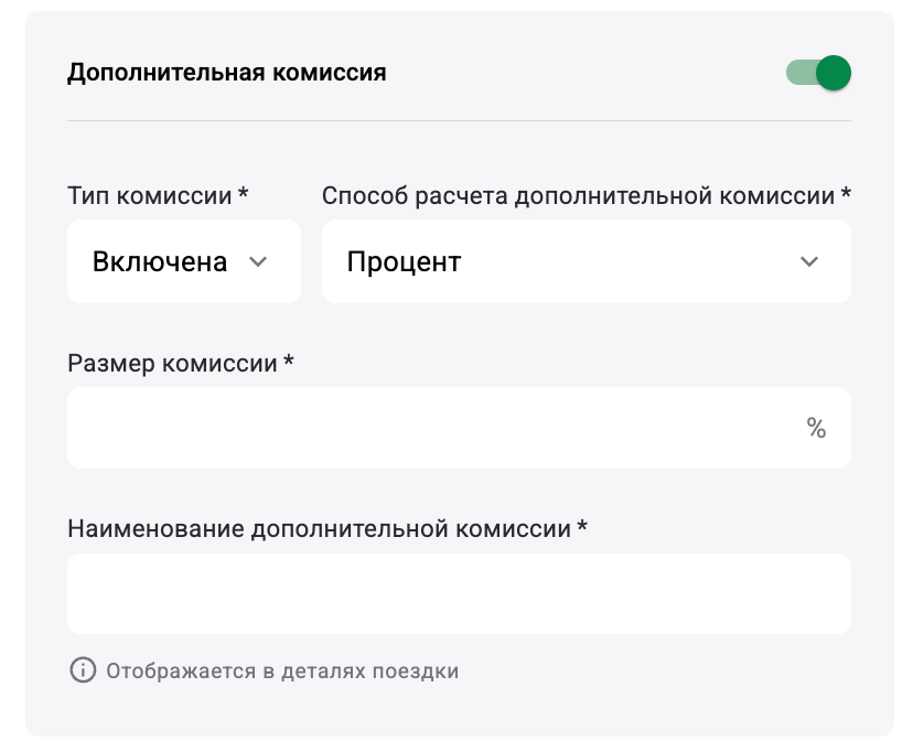 Если тип дополнительной комиссии - “включена", то плата включается в стоимость поездки.