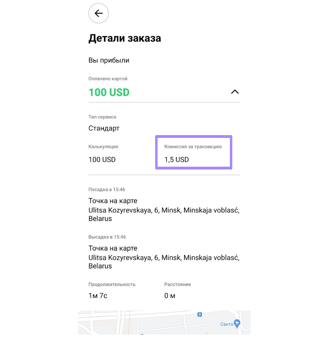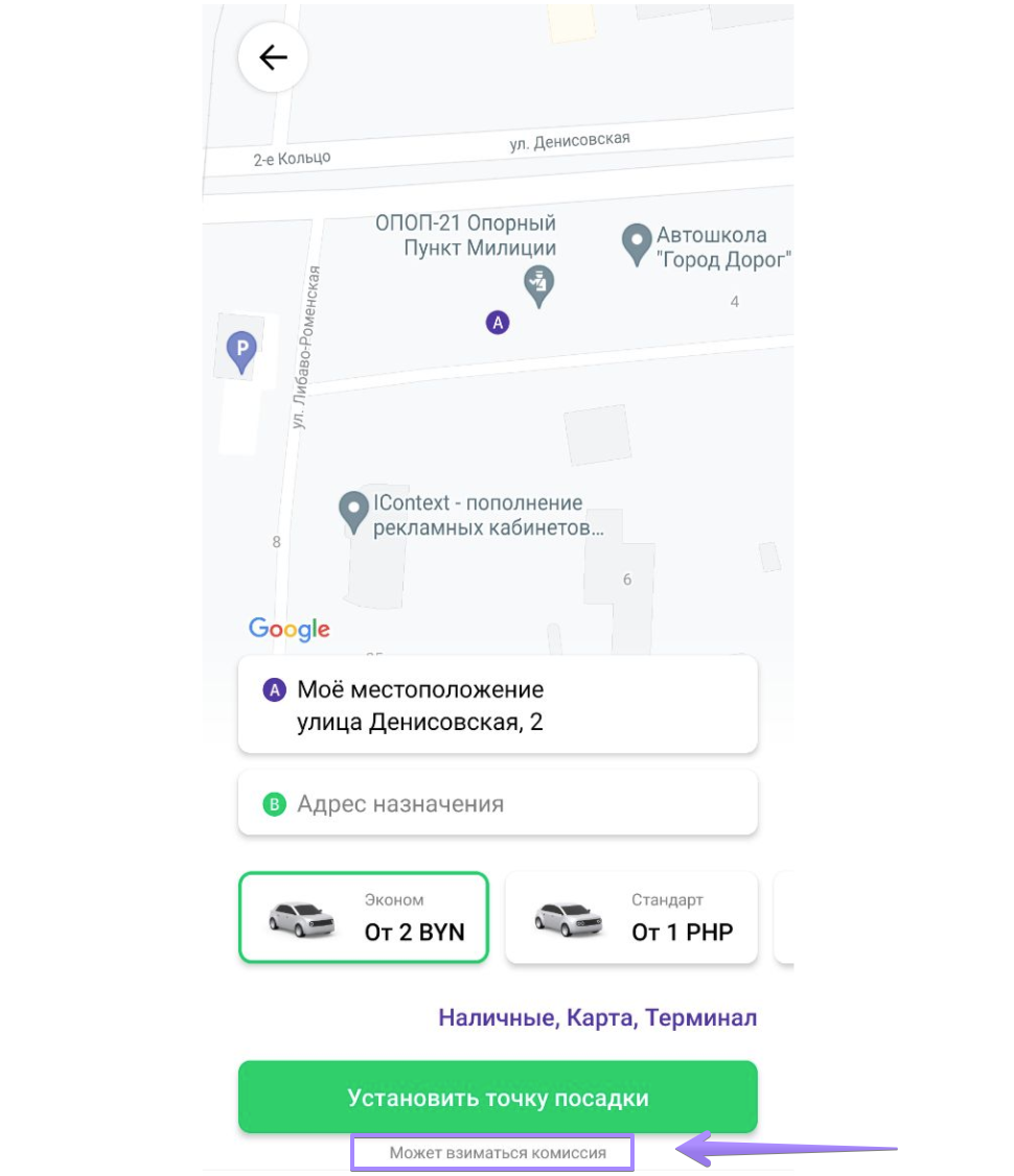 Для заказов с фиксированной ценой размер комиссии за транзакцию рассчитывается перед поездкой.