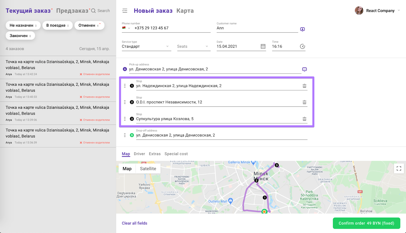 Наша платформа предоставляет возможность добавлять промежуточные остановки. Опция позволяет следующее:
