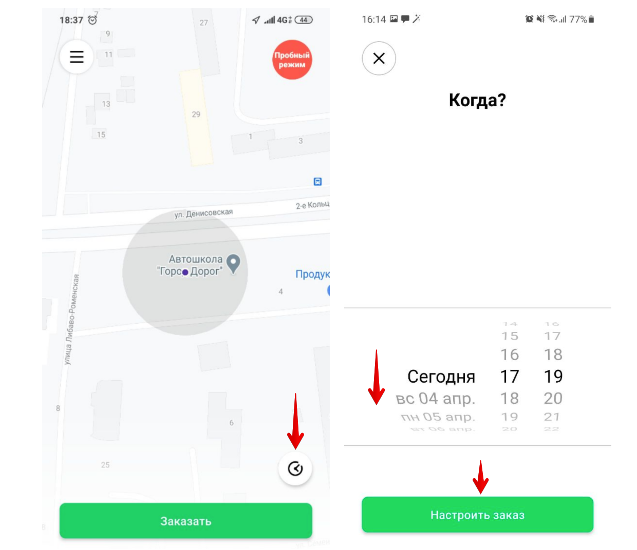 2. выберите день и время, когда вам необходима услуга
