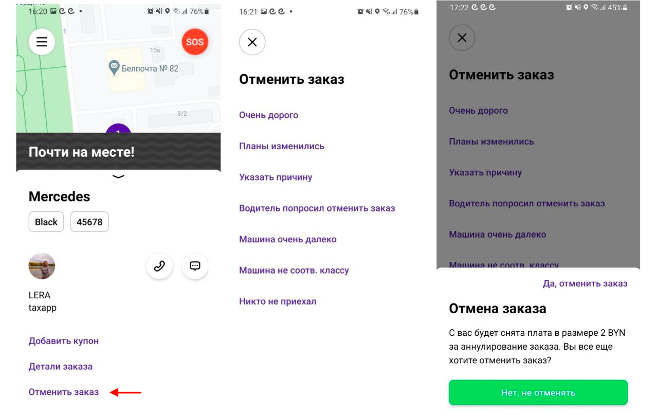 Вы можете отменить заказ на любом этапе с момента его создания до момента, когда водитель начнет поездку.