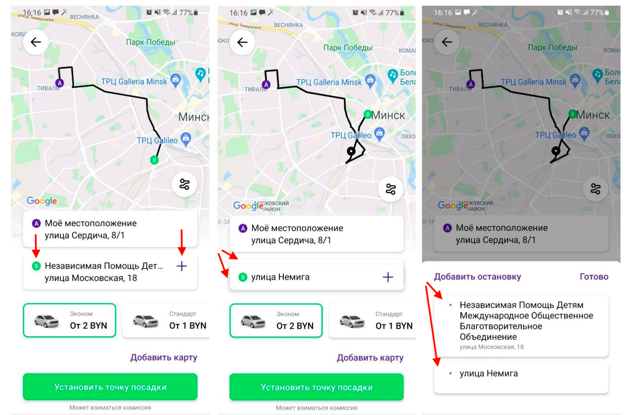 Все добавленные дополнительные остановки размещаются на экране в виде стопки карточек, нажав на которую можно просмотреть все добавленные остановки.