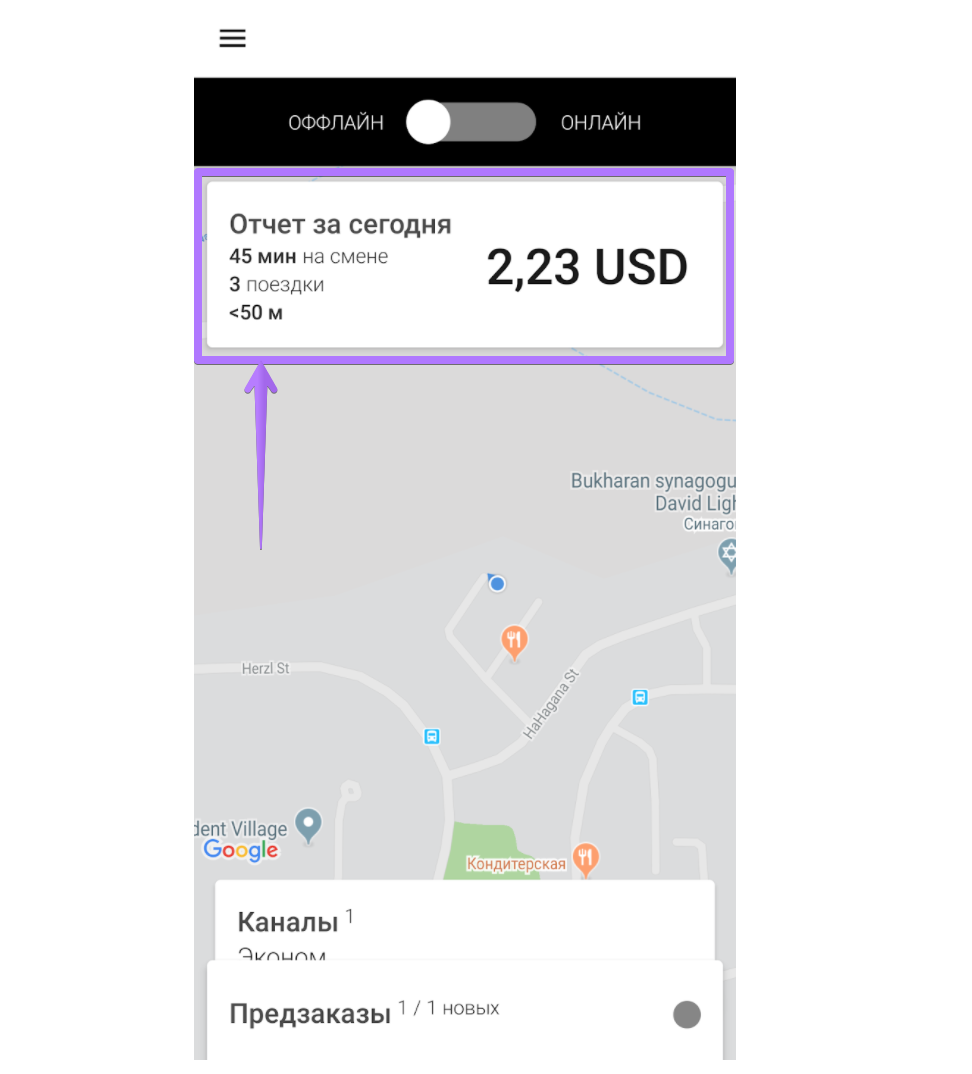В конце рабочей смены водитель может получить статистику по проделанной работе прямо в своем приложении. Для этого необходимо просто перейти из режима онлайн в оффлайн.