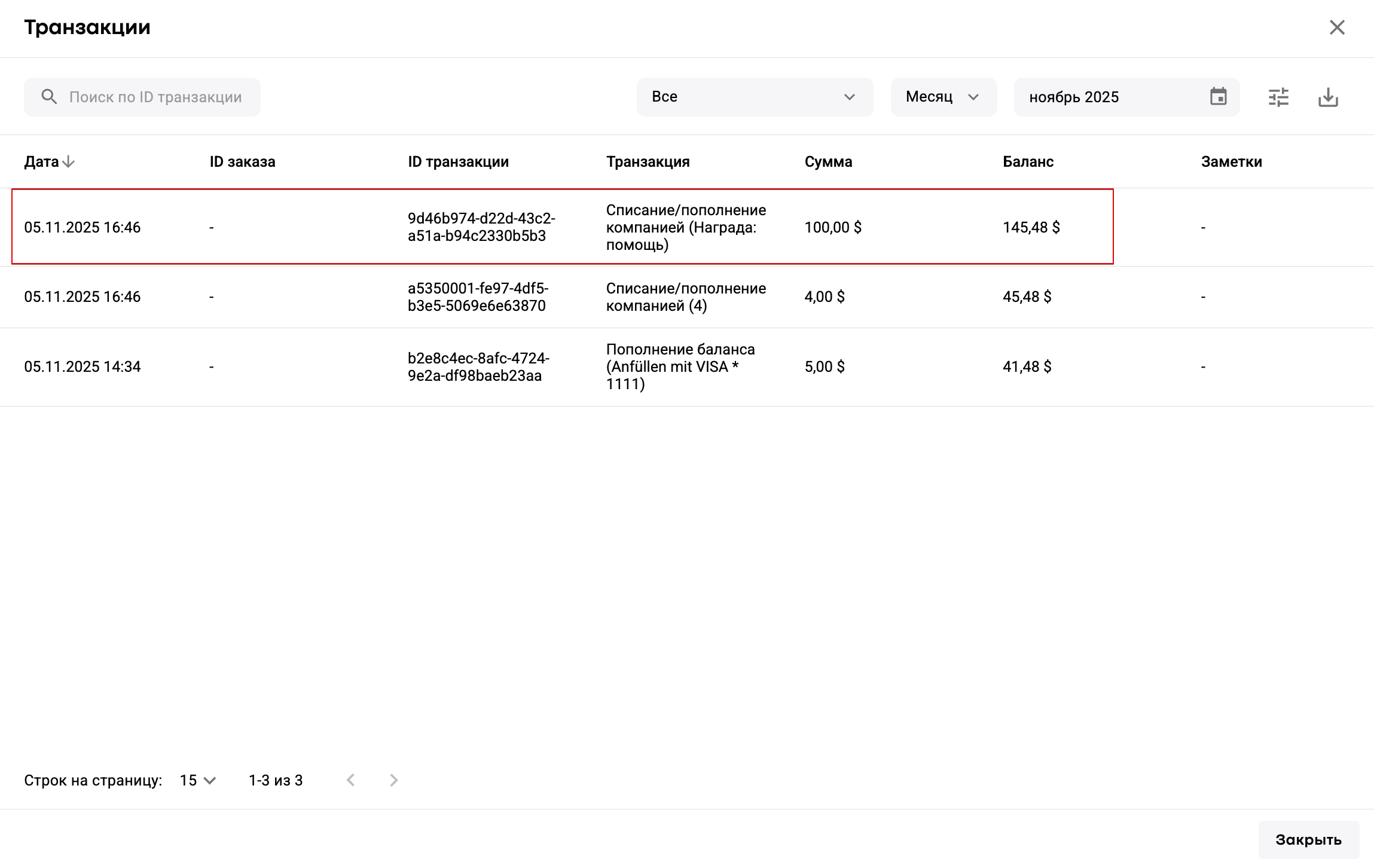 ВАЖНО: "Тип транзакции" и "Комментарий" отображаются в транзакциях водителя в его профиле в My hub в колонке "Транзакция".
